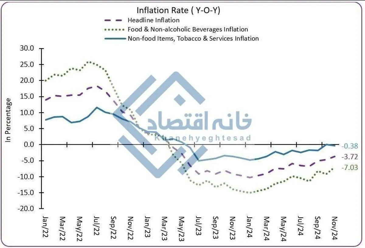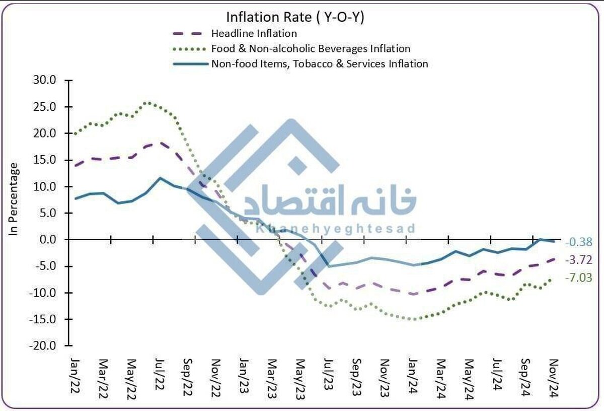 خانه اقتصاد نوشت: براساس آمار‌های اعلامی بانک مرکزی افغانستان، تورم سالانه این کشور در نوامبر ۲۰۲۴ به منفی ۳.۷ درصد رسیده، این میزان برای اقلام خوراکی منفی ۷ درصد و برای اقلام غیرخوراکی نیز منفی ۳۸. درصد است.