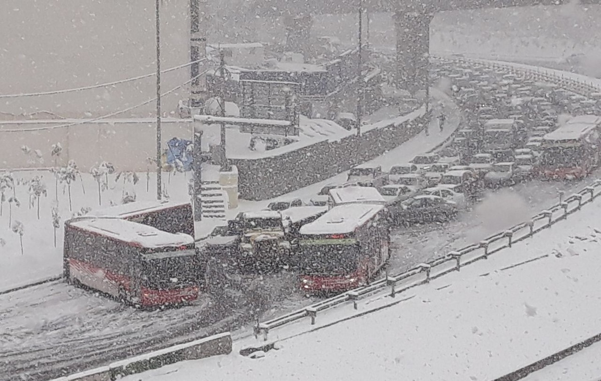 با بارش برف در بخش شمالی اتوبان امام علی، این اتوبان مسدود شده است.