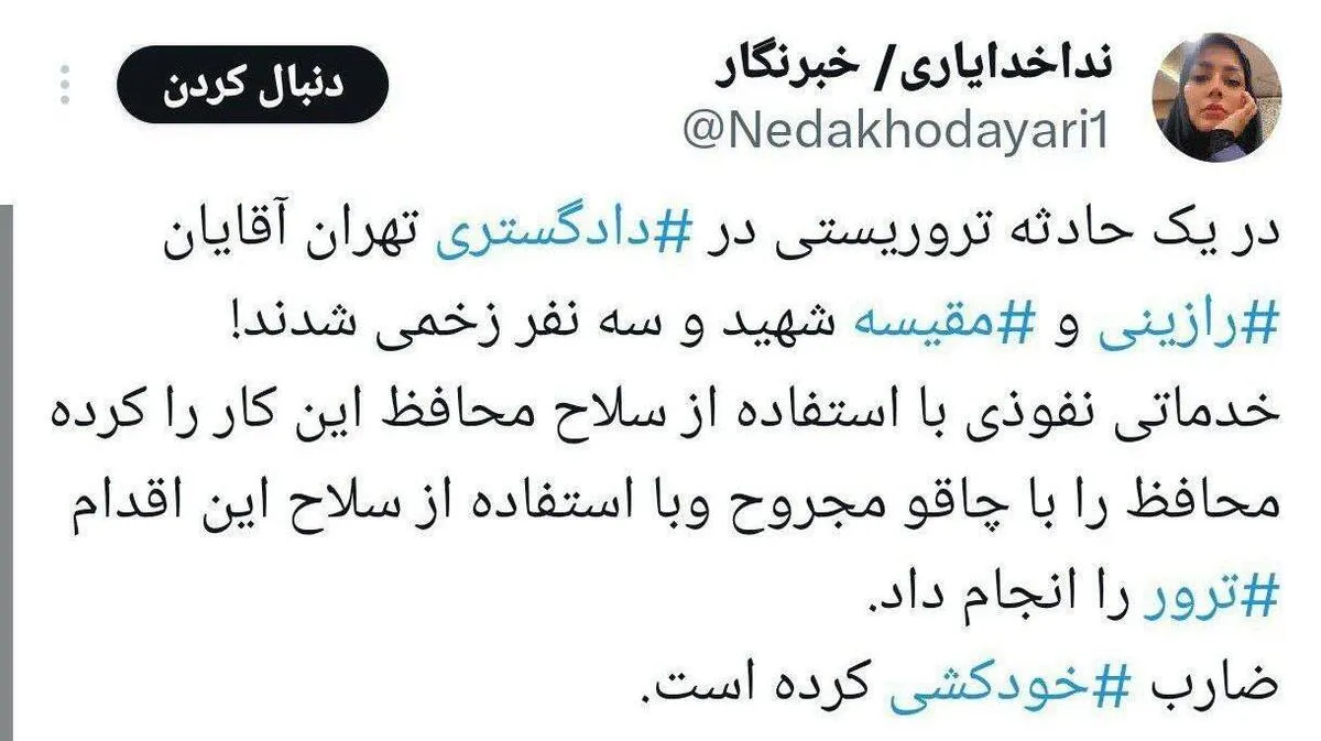 درپی تیراندازی به سمت قضات دادگستری در تهران، ۲ قاضی دیوان با نامهای محمد مقیسه و علی رازینی به شهادت رسیدند، قاضی میری و یک محافظ نیز زخمی شده است.