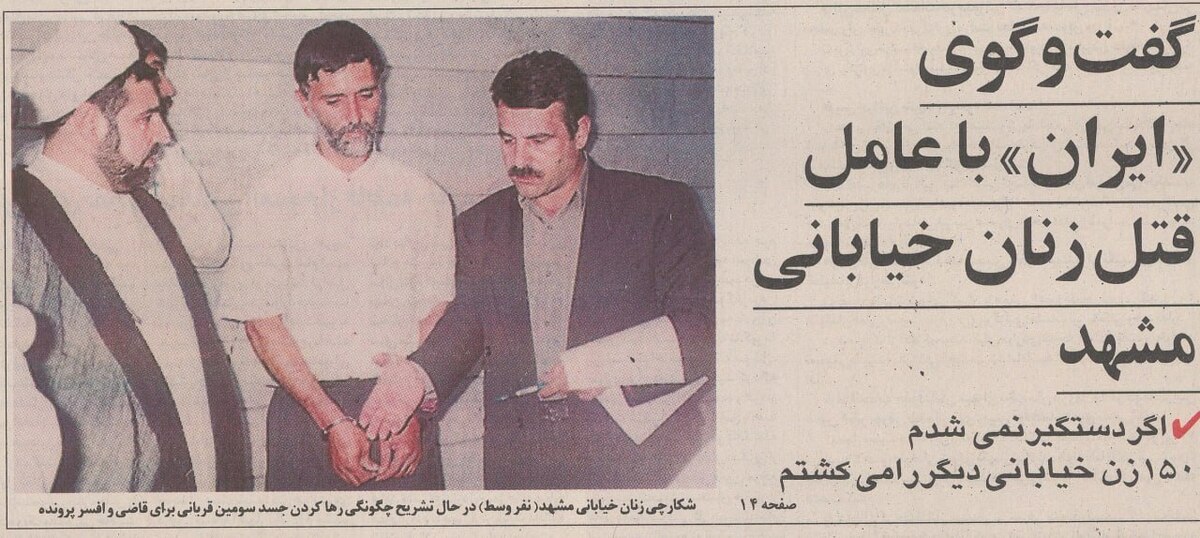 روزنامه «ایران» در شماره شنبه ۶ مرداد ۱۳۸۰ گزارشی به قلم «مهدی ابراهیمی» درباره قاتل زنان خیابانی مشهد منتشر کرد و به نقل از سعید حنایی تیتر زد: دستگیر نمی‌شدم تا ۱۵۰ زن خیابانی را می‌کشتم.