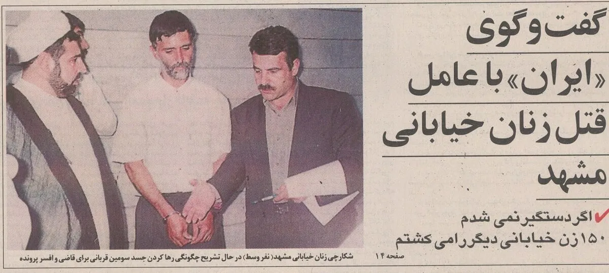روزنامه «ایران» در شماره شنبه ۶ مرداد ۱۳۸۰ گزارشی به قلم «مهدی ابراهیمی» درباره قاتل زنان خیابانی مشهد منتشر کرد و به نقل از سعید حنایی تیتر زد: دستگیر نمیشدم تا ۱۵۰ زن خیابانی را میکشتم.