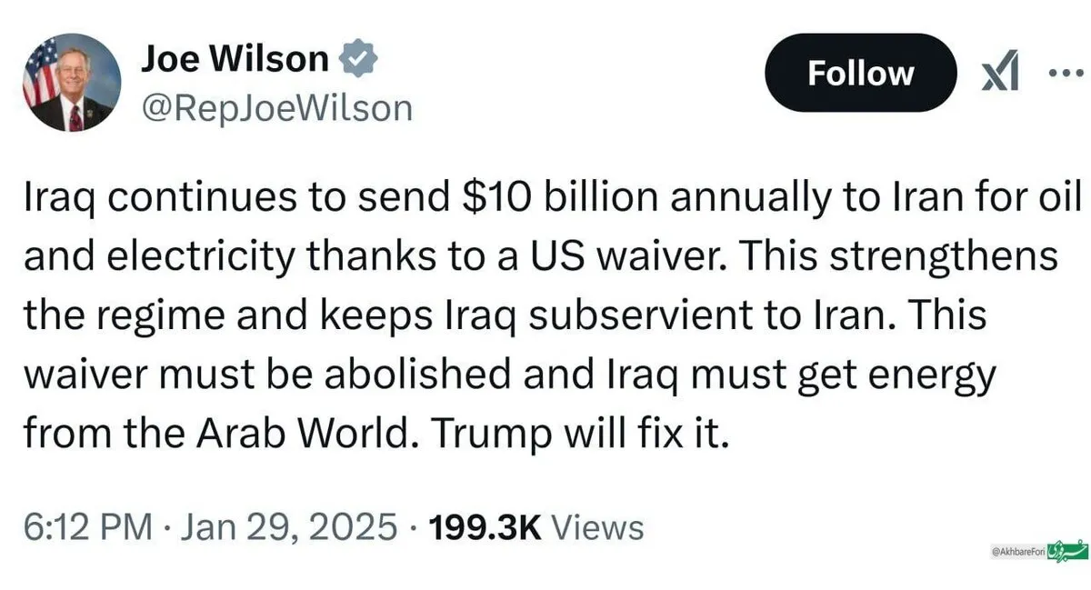 عضو مجلس نمایندگان آمریکا اعلام کرد که ترامپ به زودی معافیت عراق از تحریمهای ایران را لغو میکند.