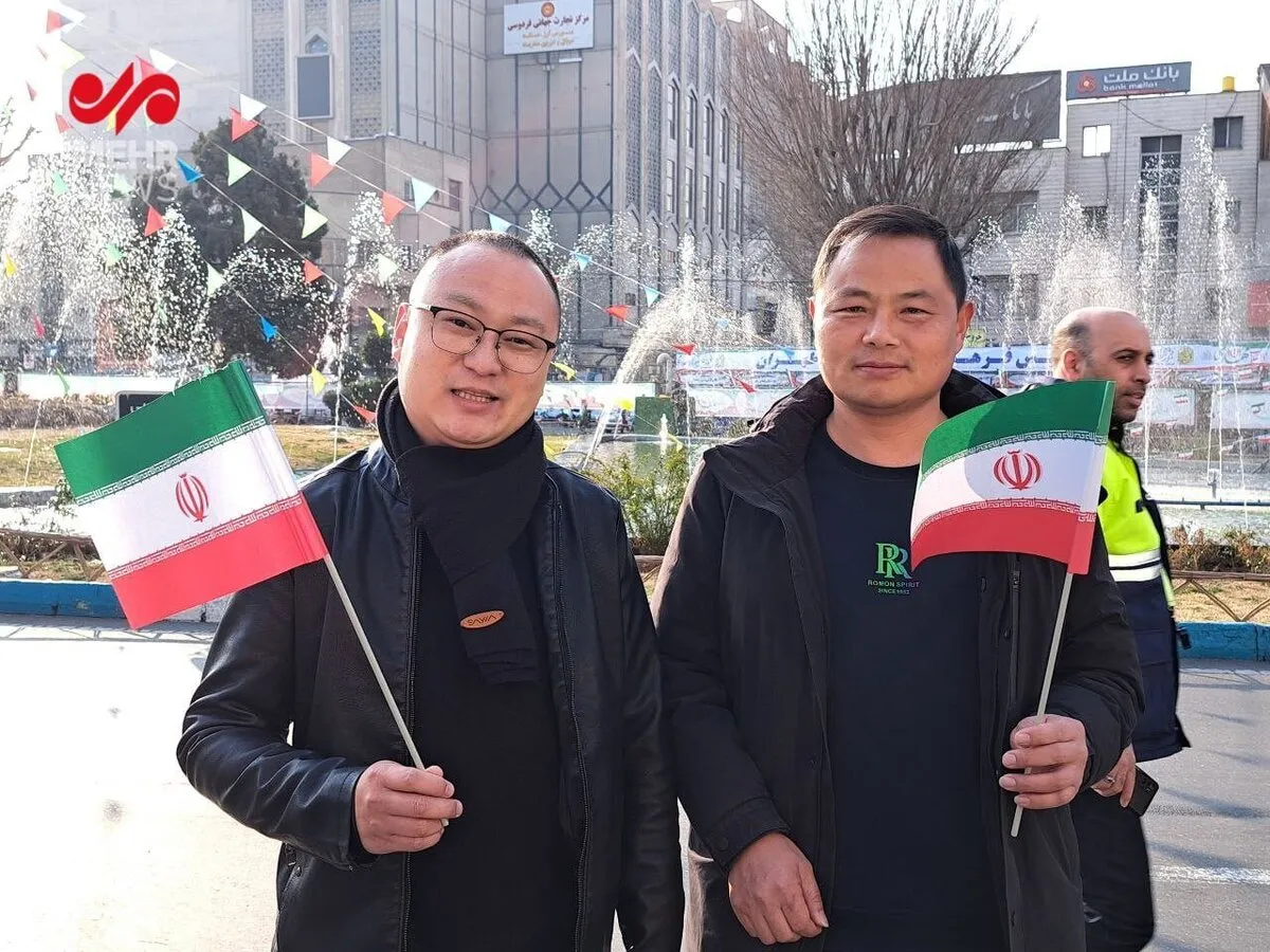 حضور چینی‌ها پرچم ایران به دست در راهپیمایی ۲۲ بهمن + عکس