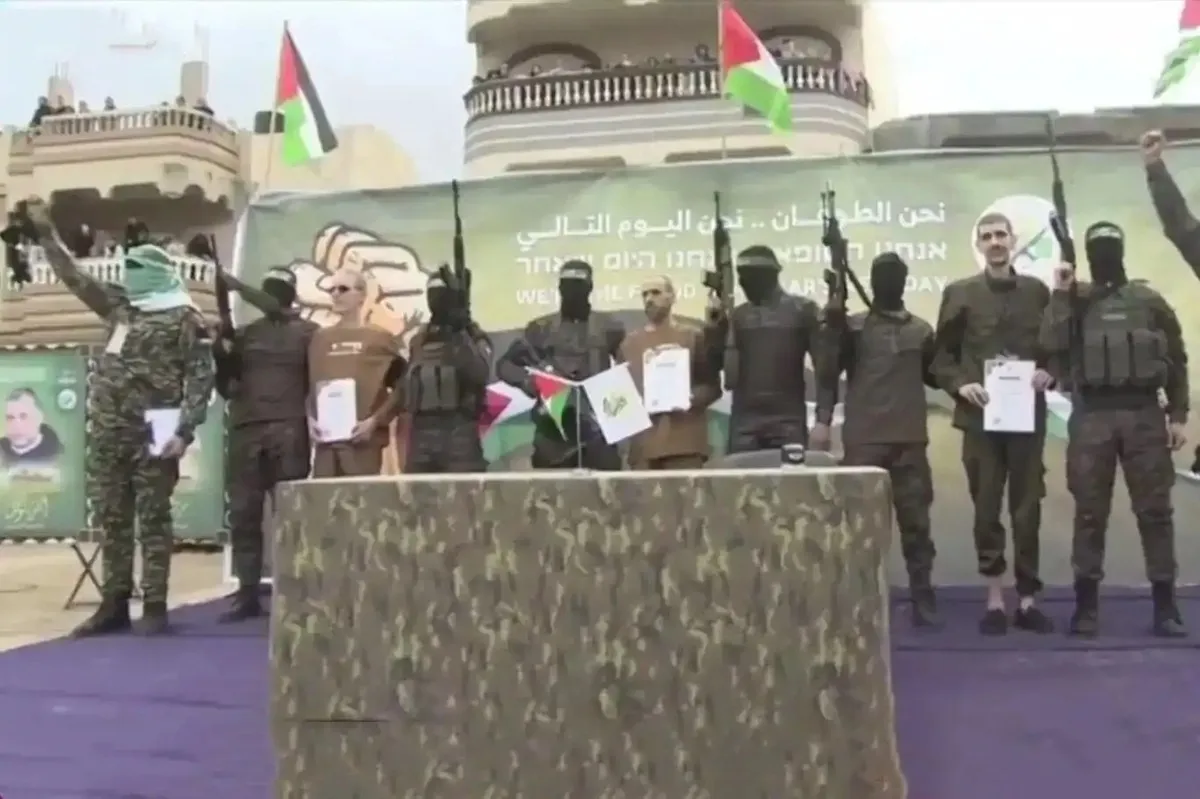 حماس روز پنجشنبه اجساد چهار گروگان اسرائیلی را طبق توافق آتشبس غزه به صلیب سرخ تحویل داد. حماس ابتدا بر روی صحنهای در خانیونس تابوتها را به نمایش گذاشت و در نوشتهای روی یک پرده بزرگ، اسرائیل را مسئول کشتهشدن آنها خواند.