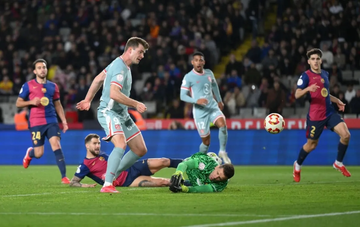 پس از این گل و درحالیکه امیدهای اتلتیکومادرید برای بازگشت به بازی به حداقل رسیده بود، ناگهان همه چیز تغییر کرد. ابتدا گل مارکوس یورنته روی غفلت بازیکنان بارسلونا بازی را ۴-۳ کرد. همه در تصور این بودند که این گل باعث میشود بازی برگشت با حساسیت بیشتری و تنها یک گل اختلاف بین دو تیم آغاز شود، اما سورلوت چیز دیگری در ذهن خودش میپروراند. او مانند دیدار دو تیم در لالیگا از راه رسید و در لحظات پایانی دروازه شزنی را باز و نتیجه را ۴-۴ مساوی کرد. ثانیههایی بعد داور در سوت دمید تا این بازی دیوانهوار و جذاب با تساوی پرگل به پایان برسد.