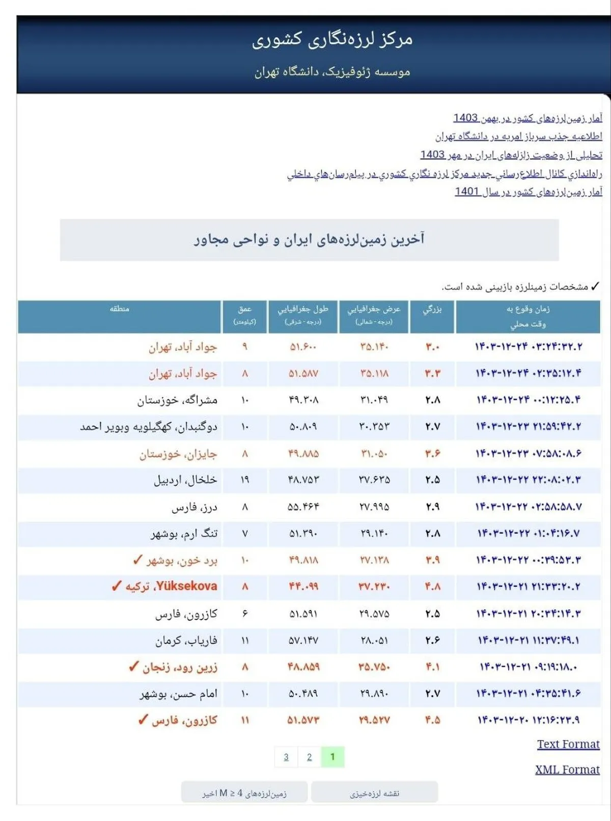 طبق گزارش مرکز زلزله نگاری کشور زلزله‌ای به بزرگی ۳.۳ ریشتر صبح امروز تهران را لرزاند.