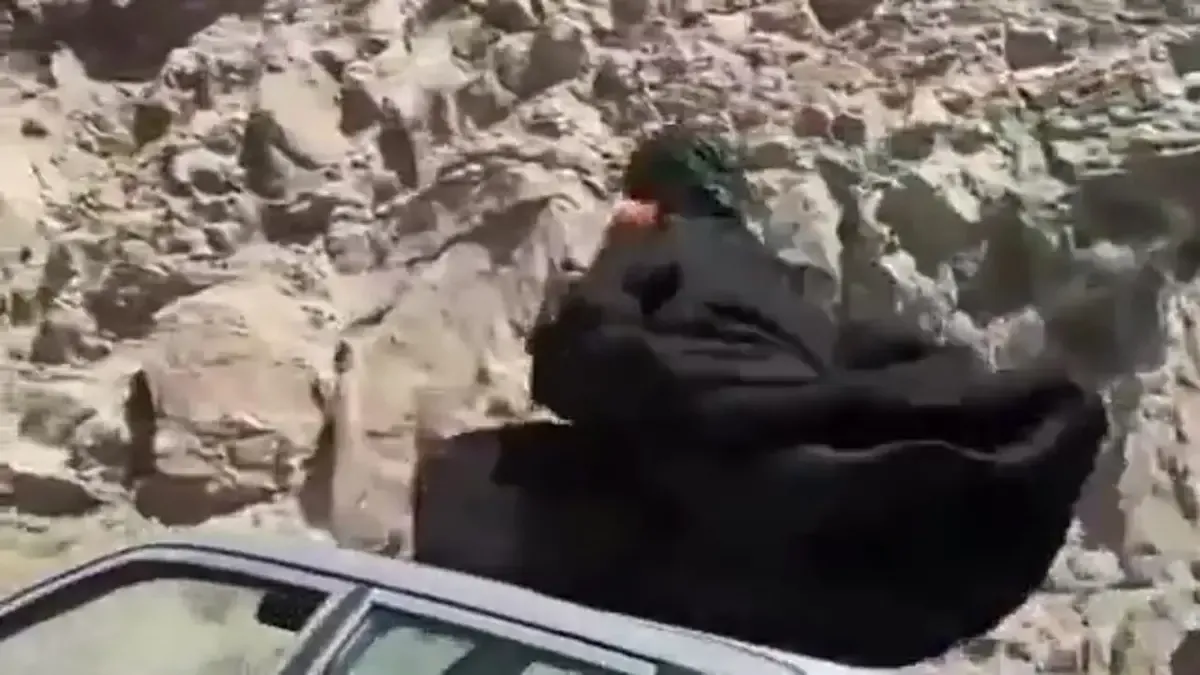 ویدئو | زنی که روی سقف ماشین در حال حرکت نشست!