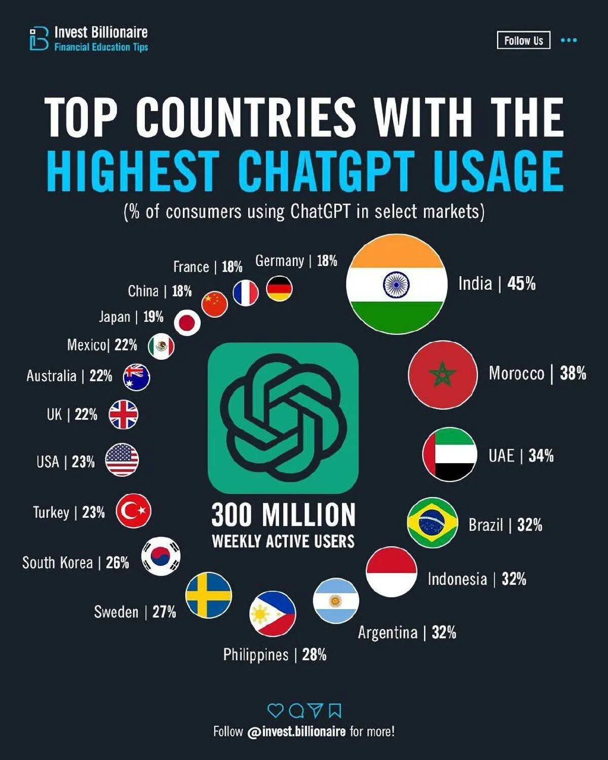 بیشترین کاربر چتجیپیتی منعلق به کدام کشور است؟