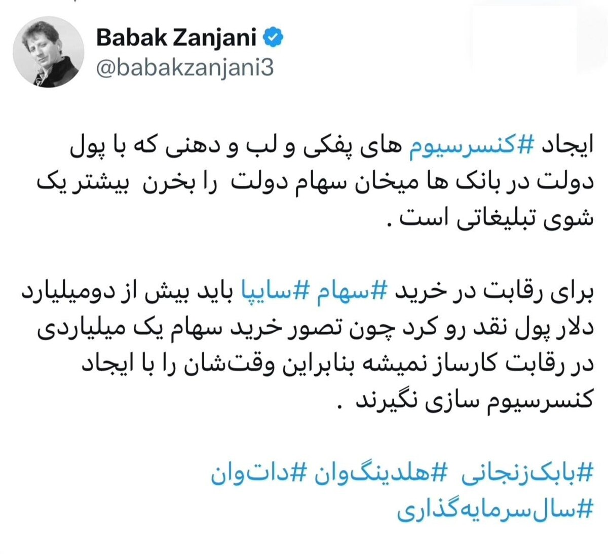صفحه منتسب به بابک زنجانی در اپلیکیشن ایکس برای رقبایش در خرید سایپا کُری خواند.