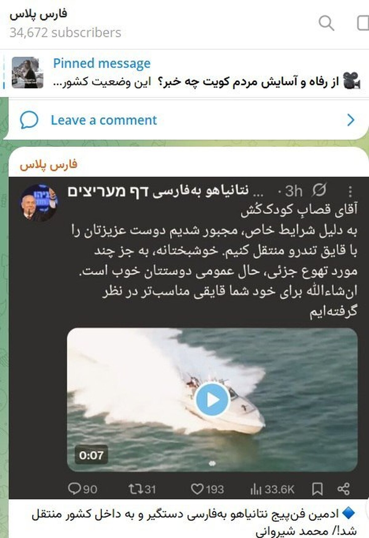 خبرگزاری فارس: ادمین فن‌پیج نتانیاهو به‌فارسی دستگیر و به داخل کشور منتقل شد
