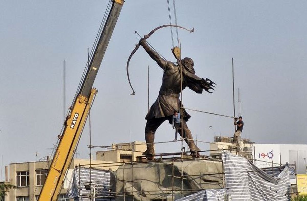 (ویدئو) مجسمۀ ۱۵ متری آرش در میدان ونک تهران نصب شد