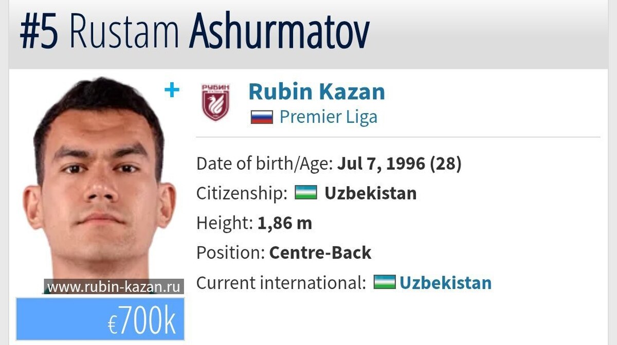 رستم آشورماتف، مدافع اهل ازبکستان، هماکنون در روبین کازان روسیه بازی میکند و یکی از چهرههای شاخص فوتبال آسیای میانه محسوب میشود. سیدورف، بهدلیل شناخت قبلی از فوتبال آسیای مرکزی، این بازیکن را برای جذب به کادرفنی معرفی کرده است.