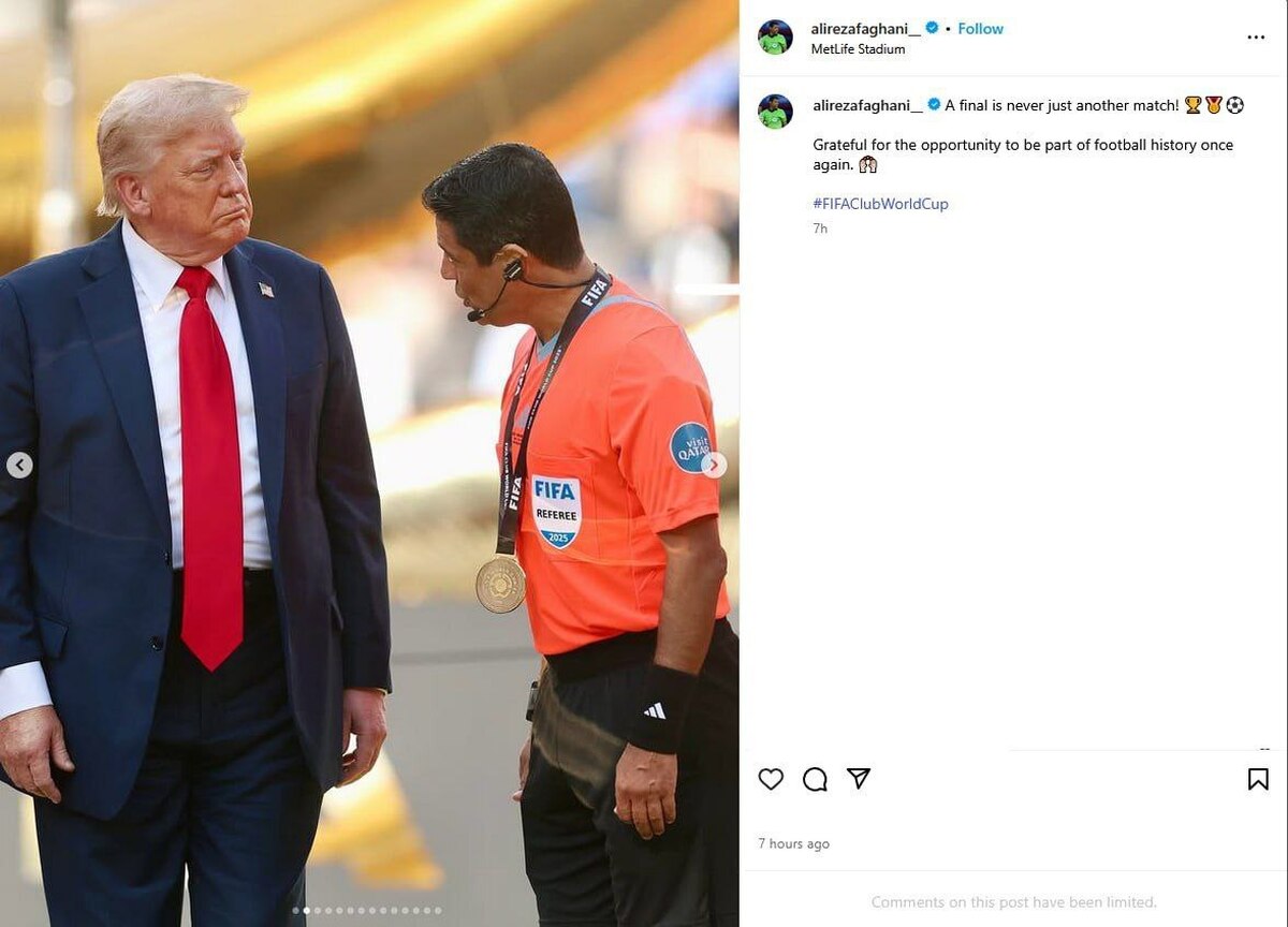 پس از انتقادات فراوانی که در رابطه با خوشوبشهای شب گذشته فغانی با رئیسجمهور آمریکا در فینال جام جهانی باشگاهها مطرح شد علیرضا فغانی کامنتهای پست خود در اینستاگرام را بست.