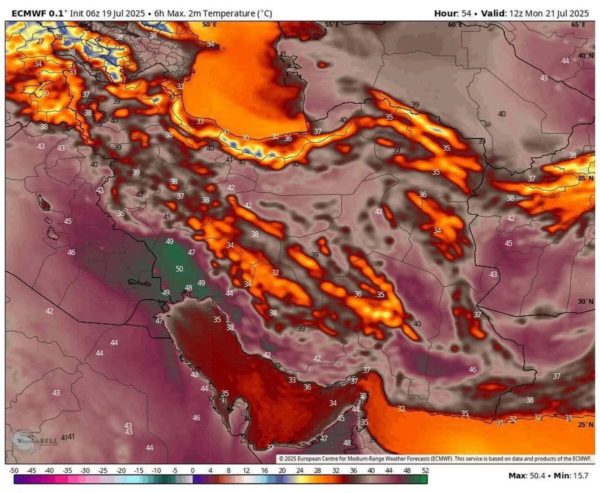 روزهای دوشنبه و سه شنبه شاهد اوج گرما در منطقه خواهیم بود و بسیاری از نواحی شاهد دماهای بسیار بالا و بخش گستردهای از منطقه شاهد دماهای مثبت یا برابر ۴۰ خواهند بود!