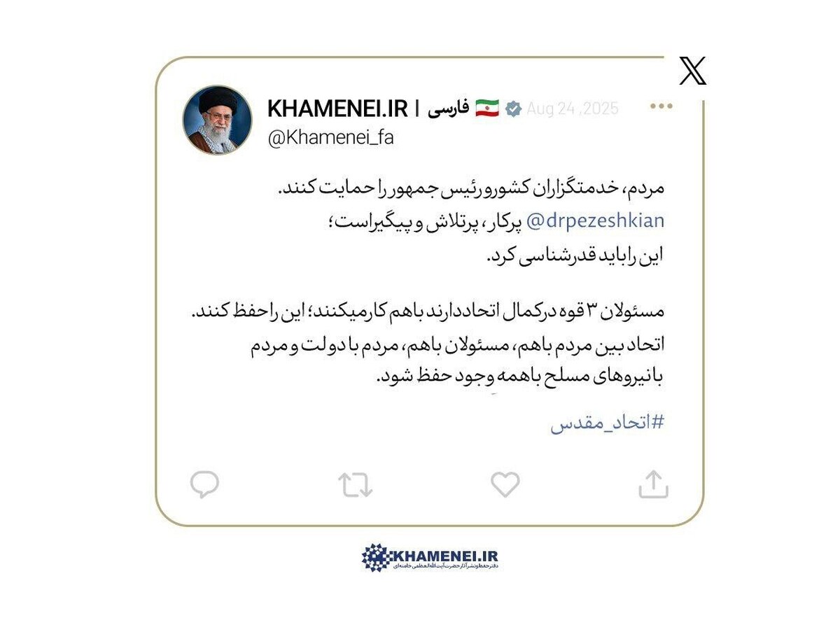 توئیت امروز رهبر انقلاب در حمایت از رئیسجمهور