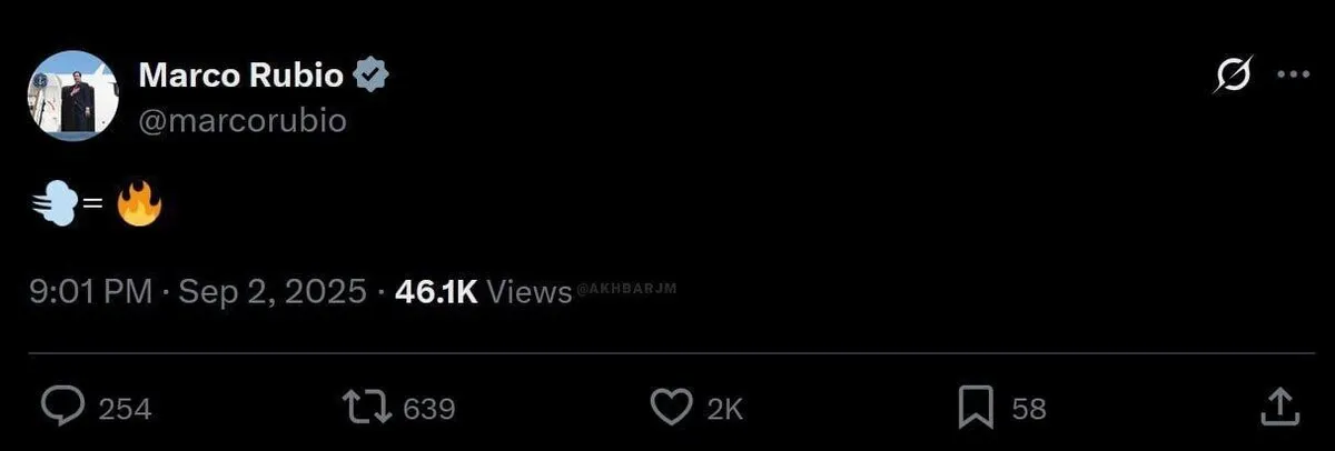 مارکو روبیو، وزیرخارجه آمریکا هنگام سخنرانی ترامپ یک پست عجیب در توئیتر منتشر کرد. برخی کاربران فضای مجازی پیغام او را اینگونه تعبیر کردهاند: اگر طوفان به پا کنی آتش میگیری.
