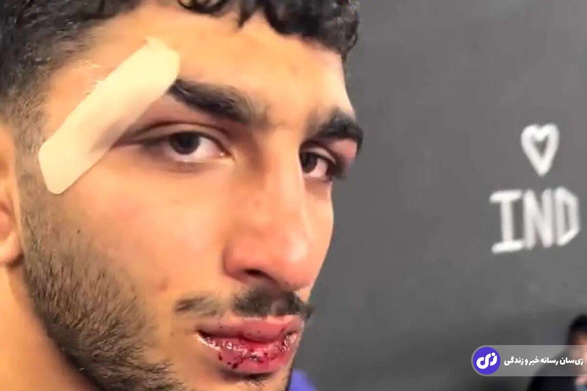 تغییر چهره دانیال سهرابی کشتی‌گیر زخمی ایران برای کسب مدال + ویدئو