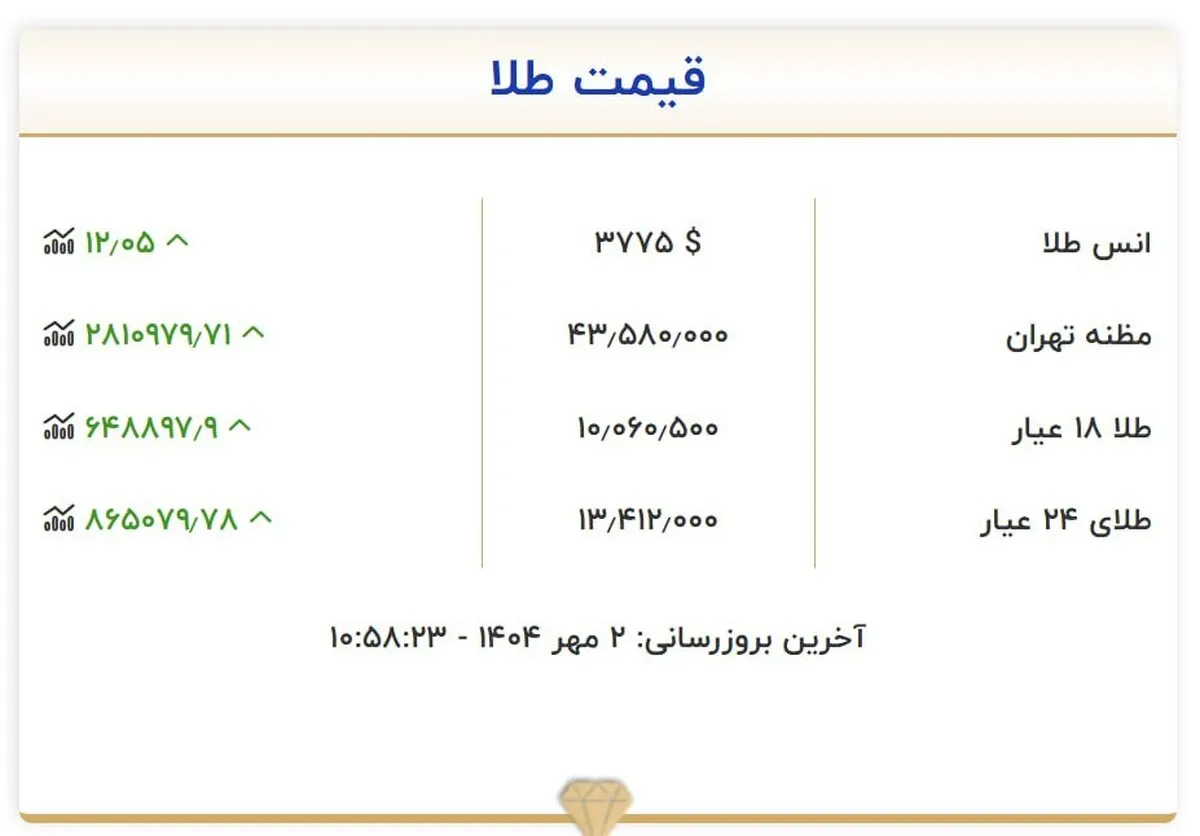 طبق اعلام سایت رسمی اتحادیه طلای کشور قیمت هر گرم طلا در صبح امروز به بالای ۱۰ میلیون تومان رسید.