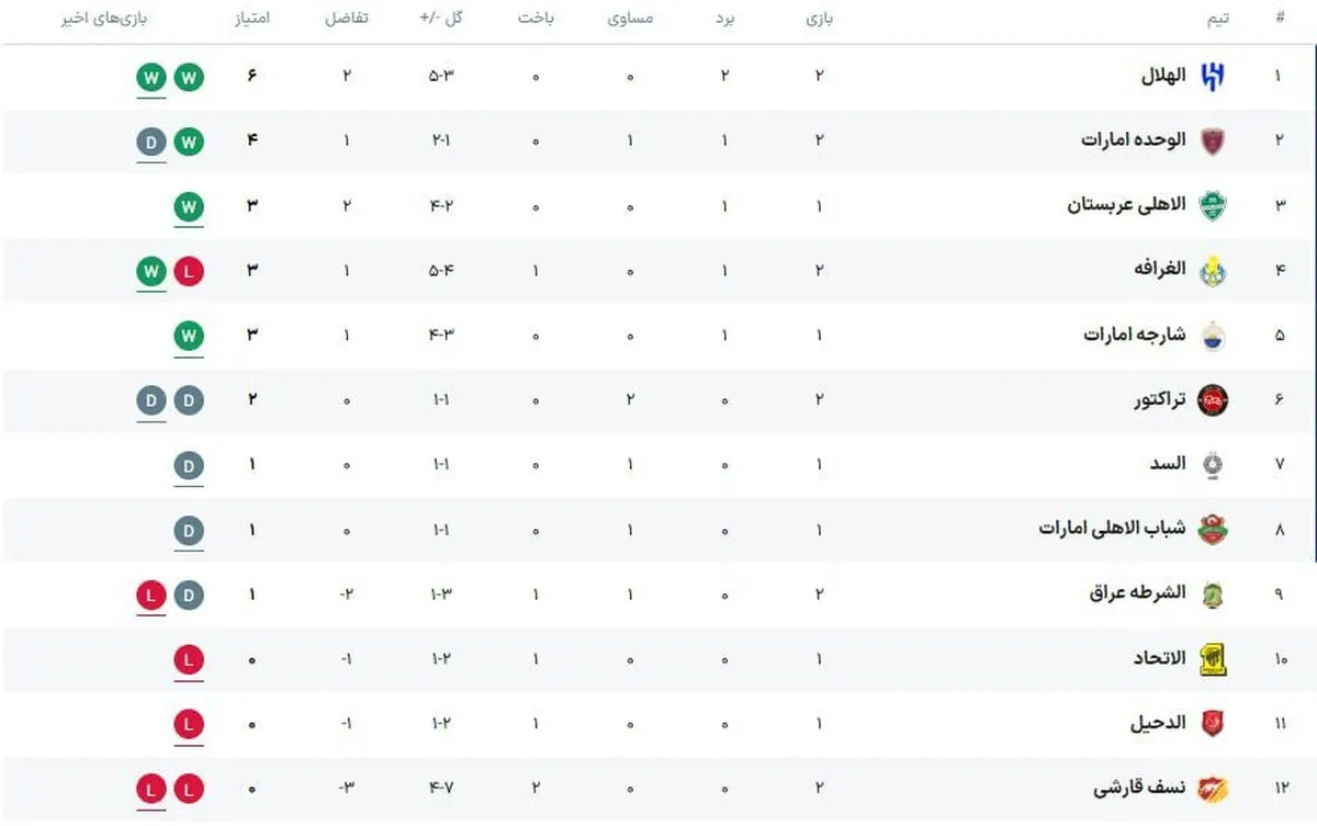 جدول غرب آسیا لیگ نخبگان پس از تساوی تراکتور در بازی امروز