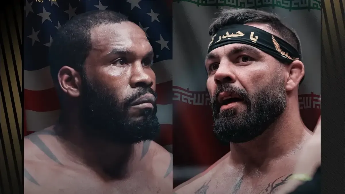 مبارزه سنگین امیر علی‌اکبری و تونی جانسون آمریکایی؛ کری‌خوانی امیر برای جانسون و اشاره به جنگ ۱۲ روزه