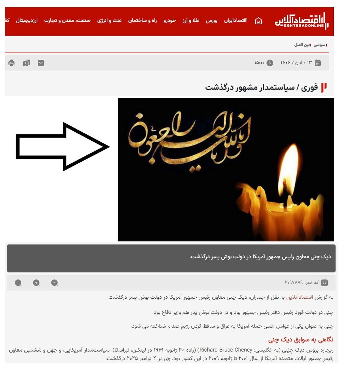 (عکس) استفاده از عبارت «انا لله و انا الیه راجعون» برای دیک چنی!
