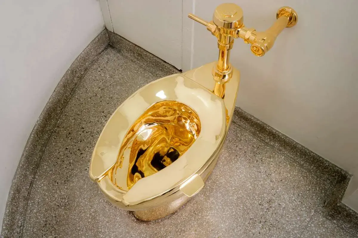 توالت فرنگی «آمریکا» ساختهشده از طلای ۱۸ عیار، هفته آینده در نیویورک به حراج میرسد. در این اثر بیش از ۱۰۱ کیلوگرم طلا به کار رفته و قیمت پایه آن تاکنون حدود ۱۰ میلیون دلار اعلام شده است