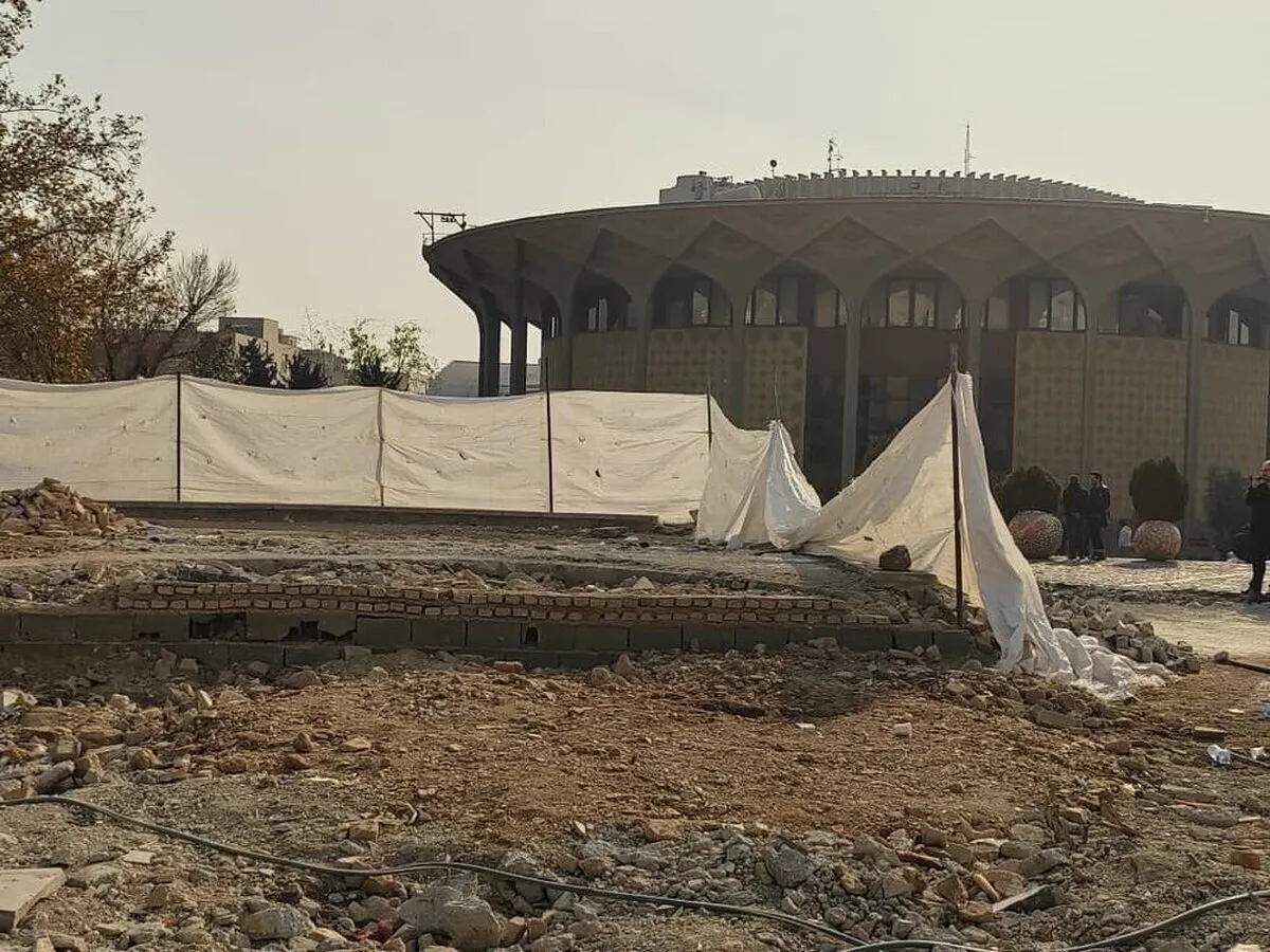 تصاویر جدید نشان می‌دهد حوض مدور مقابل بنای تئاتر شهر به‌طور کامل تخریب شده است. این محوطه و سکوهای اطراف آن زمانی محل اجرای تئاتر خیابانی بود، اما حالا با خاک یکسان شده‌ است.