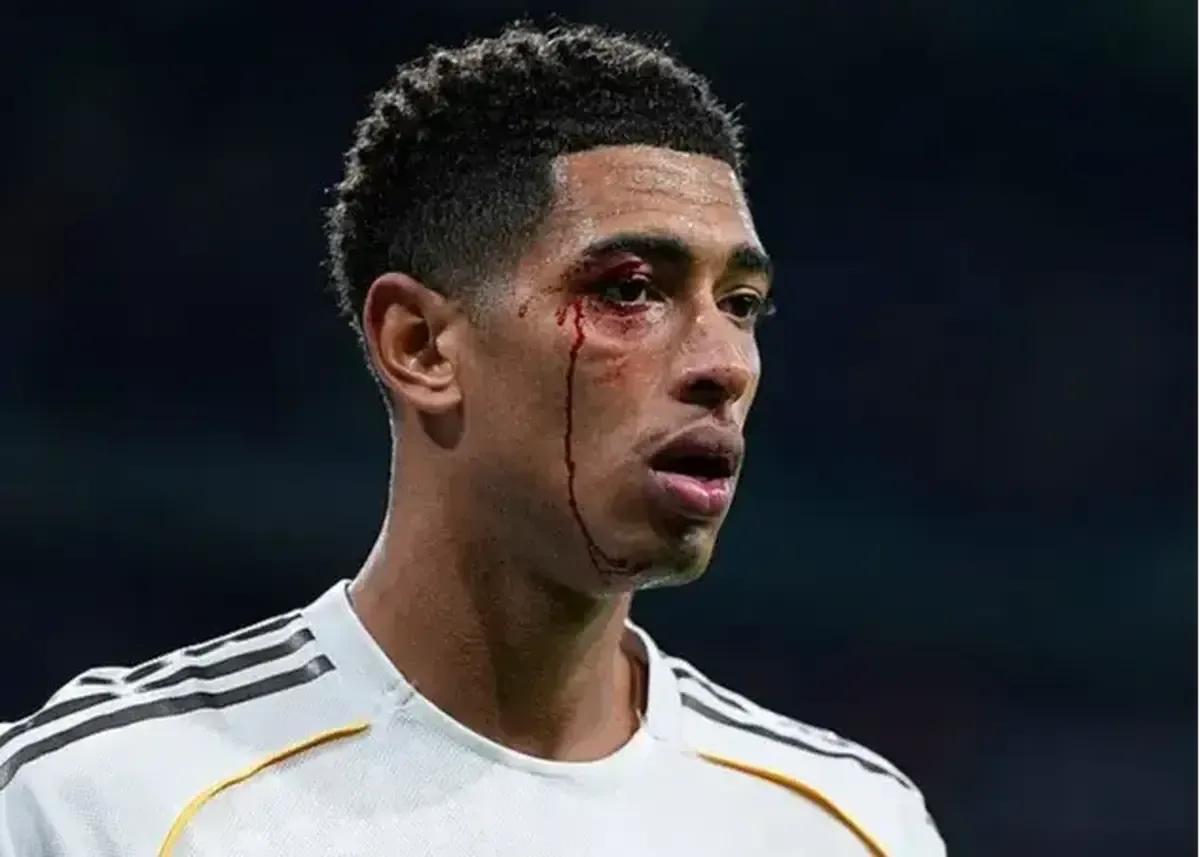 جود بلینگام در شبی ناگوار برای رئال مادرید ۹ نفره، پس از ضربه‌ای به سر، صورتش خونین شد.