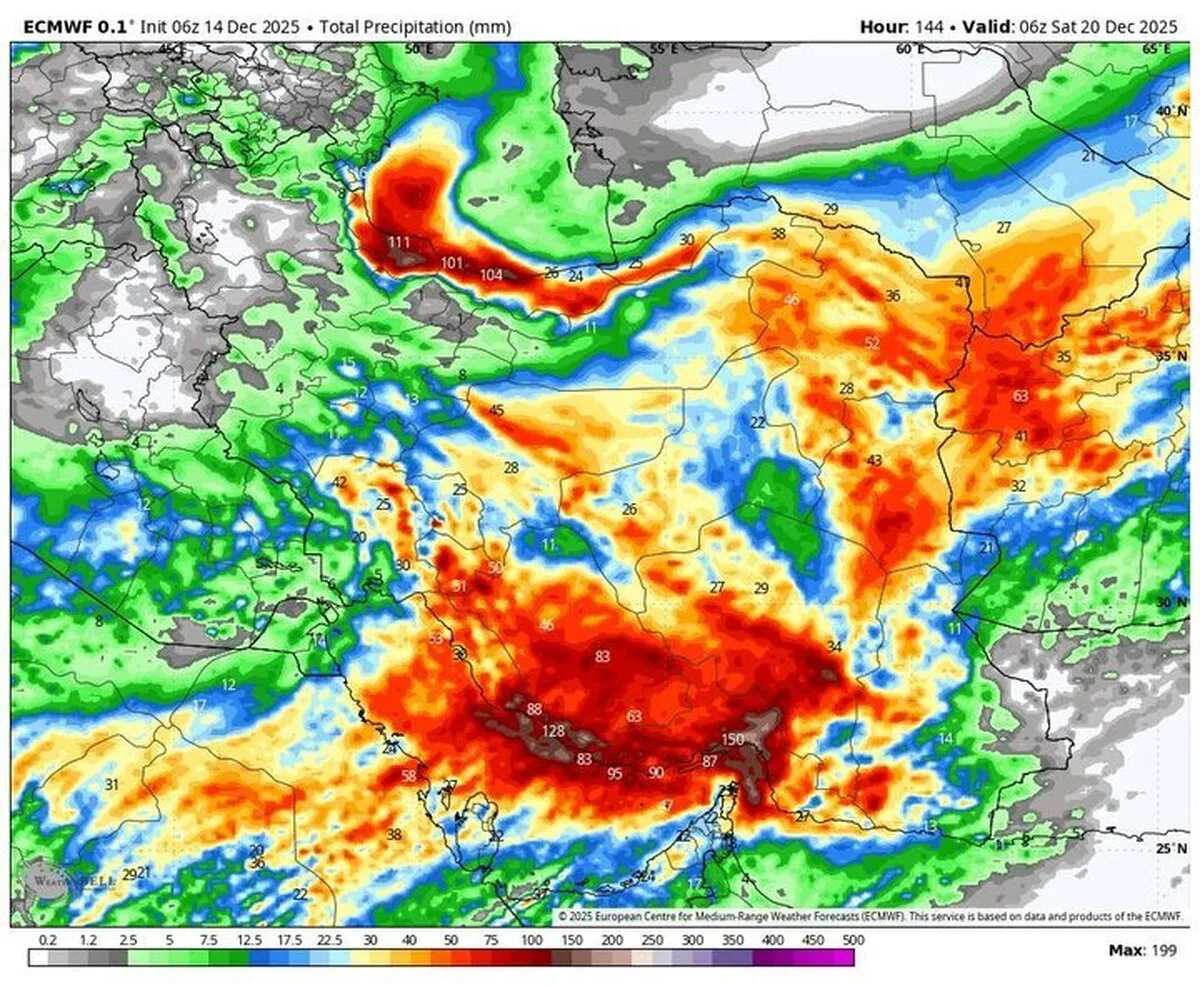 وی افزود: فردا (سه‌شنبه، ۲۵ آذر)، در بیشتر مناطق کشور بارندگی ادامه خواهد داشت و تنها استان‌های ایلام، نیمه جنوبی سیستان و بلوچستان و نواحی مرکزی سمنان از این شرایط مستثنی هستند. همچنین روز چهارشنبه (۲۶ آذر)، بیشتر مناطق کشور به جز نیمه جنوبی سیستان و بلوچستان تحت تأثیر بارش‌ها قرار خواهند گرفت.