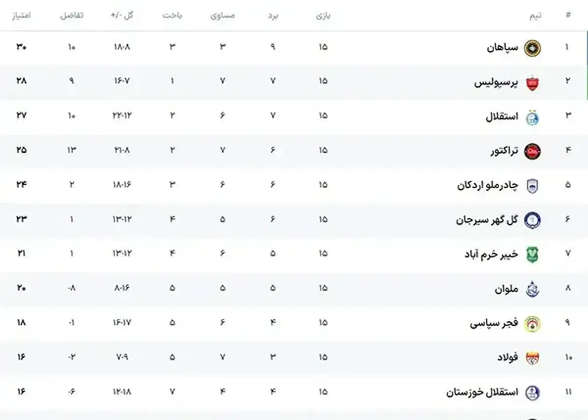 جدول لیگ تغییر کرد، استقلال به پرسپولیس رسید!