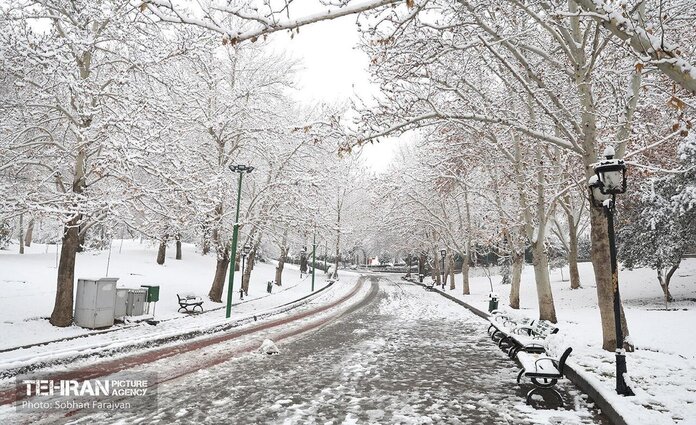 (تصاویر) شدت بارش برف در پارک ملت تهران امروز ۳۰ دی ۱۴۰۴
