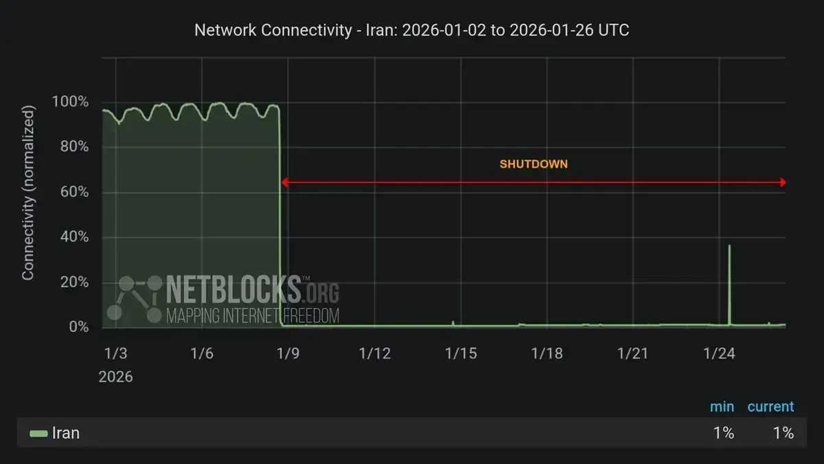 اگرچه نمودارها رشد ناگهانی در اتصال (Connectivity) را در تاریخ ۲۷ ژانویه نشان میدهند، اما وبسایتها همچنان بهشدت فیلتر بوده است
