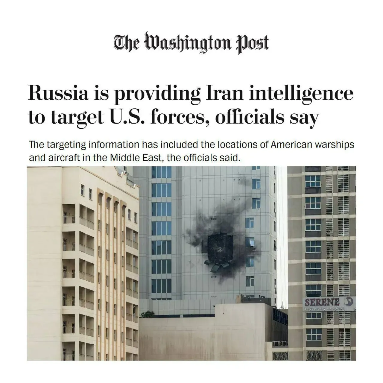 سه مقام آگاه به واشنگتن پست گفتند که روسیه از زمان شروع جنگ، اطلاعات مربوط به اهداف نظامی ایالات متحده در خاورمیانه را در اختیار ایران قرار داده است و این اولین نشانه از احتمال مشارکت یکی دیگر از دشمنان اصلی ایالات متحده در این درگیری است.