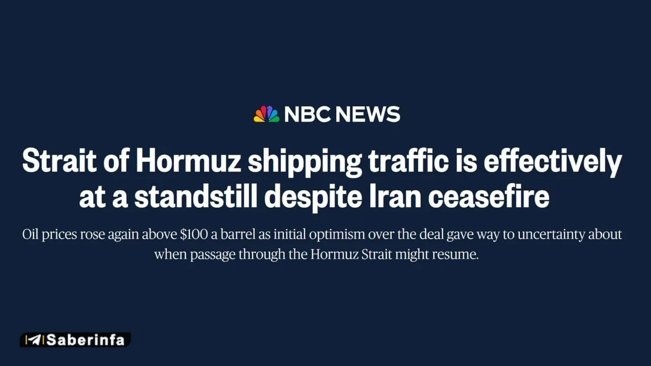 صابرین‌نیوز به نقل از شبکه NBC نوشت: ترافیک کشتیرانی در تنگه هرمز همچنان متوقف است.