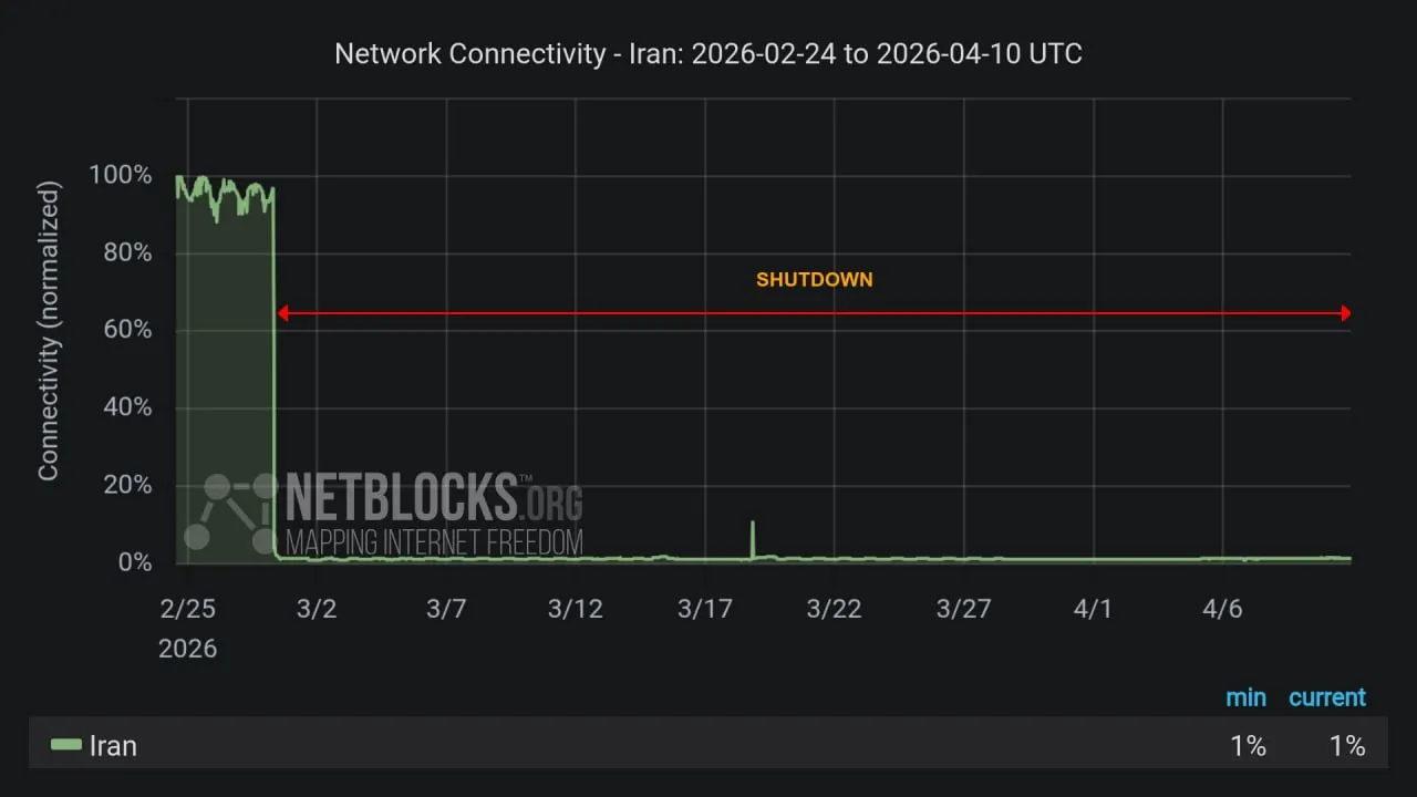 ۴۴ روز از قطعی اینترنت بین الملل در ایران میگذرد و براساس گزارش نت بلاکس عدم دسترسی کاربران به اینترنت جهانی به ۱۰۳۶ ساعت رسیده است.
