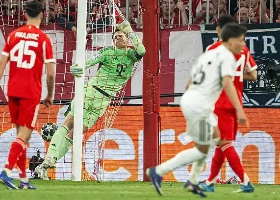 شاگردان آربلوا بازی را طوفانی آغاز کردند و در ثانیه ۳۵ به لطف اشتباه عجیب مانوئل نویر ستاره دیدار رفت، رئال توانست خیلی زود گل اول را به ثمر برساند. پاس اشتباه کاپیتان بایرن در میانه راه به آردا گولر ستاره ترکیهای رئال رسید و این بازیکن موفق شد با ضربهای دقیق و از راه دور دروازه میزبان را بازکند تا همه چیز به تساوی کشیده شود.