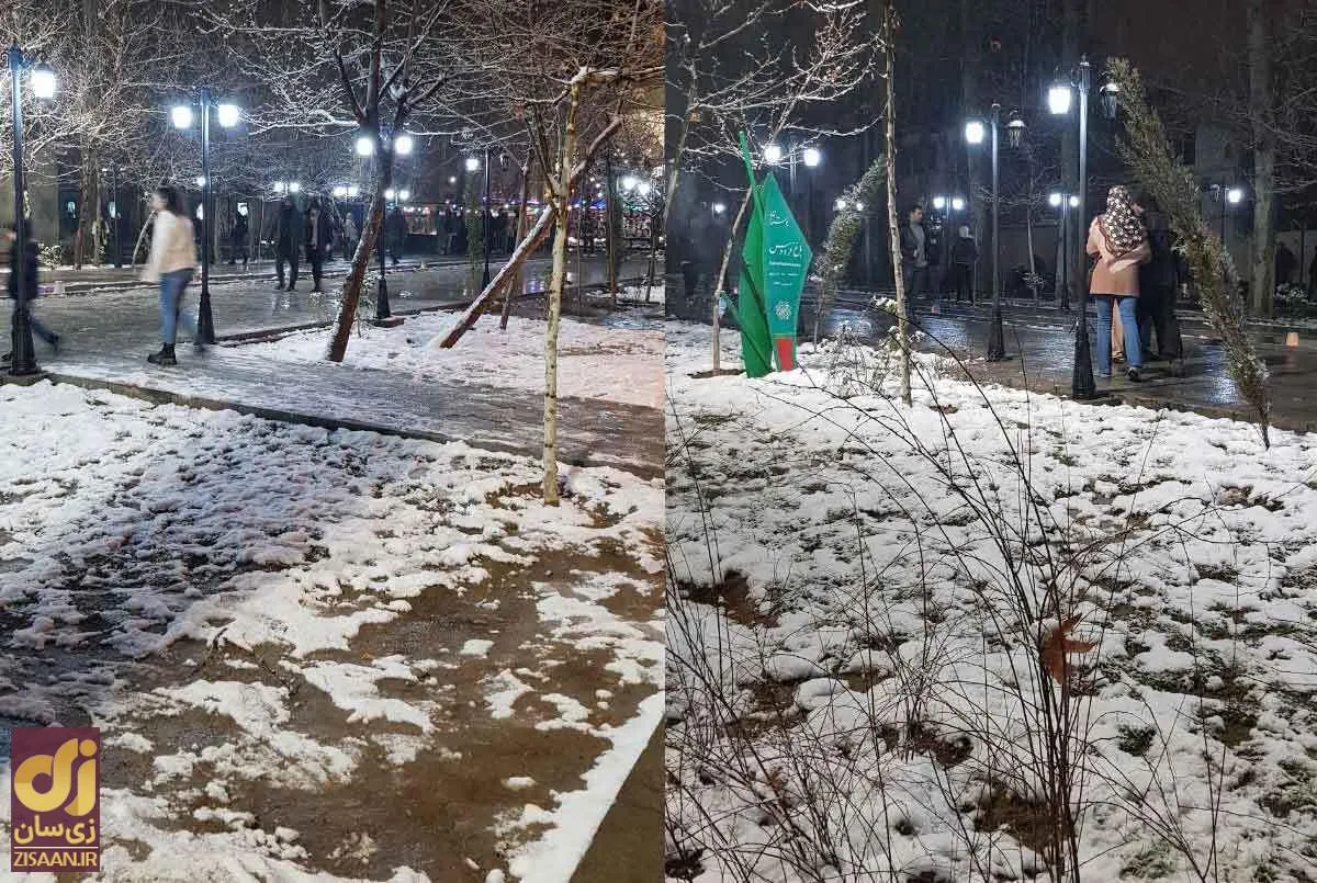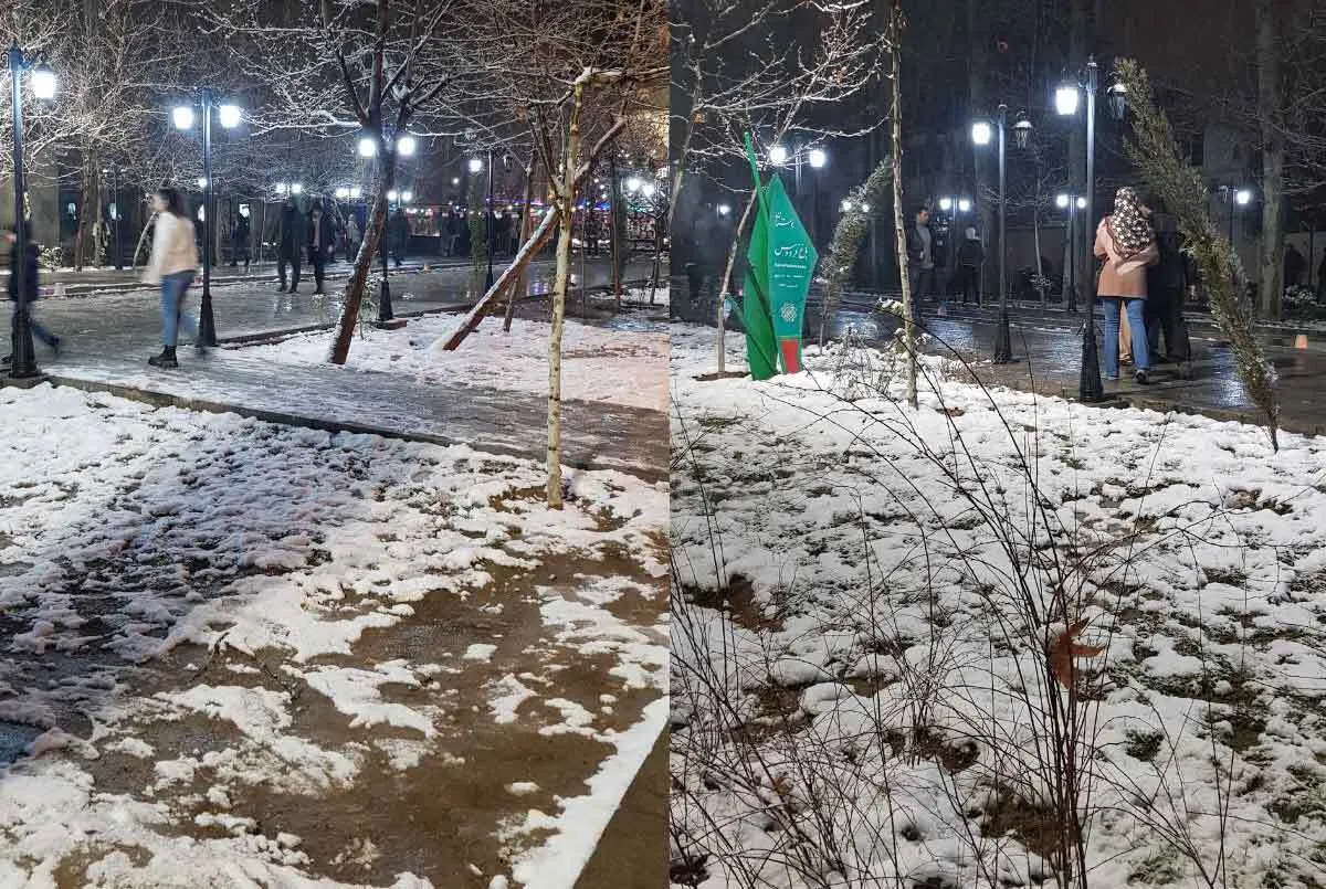 (تصاویر) حال و هوای باغ فردوس در شب برفی تهران