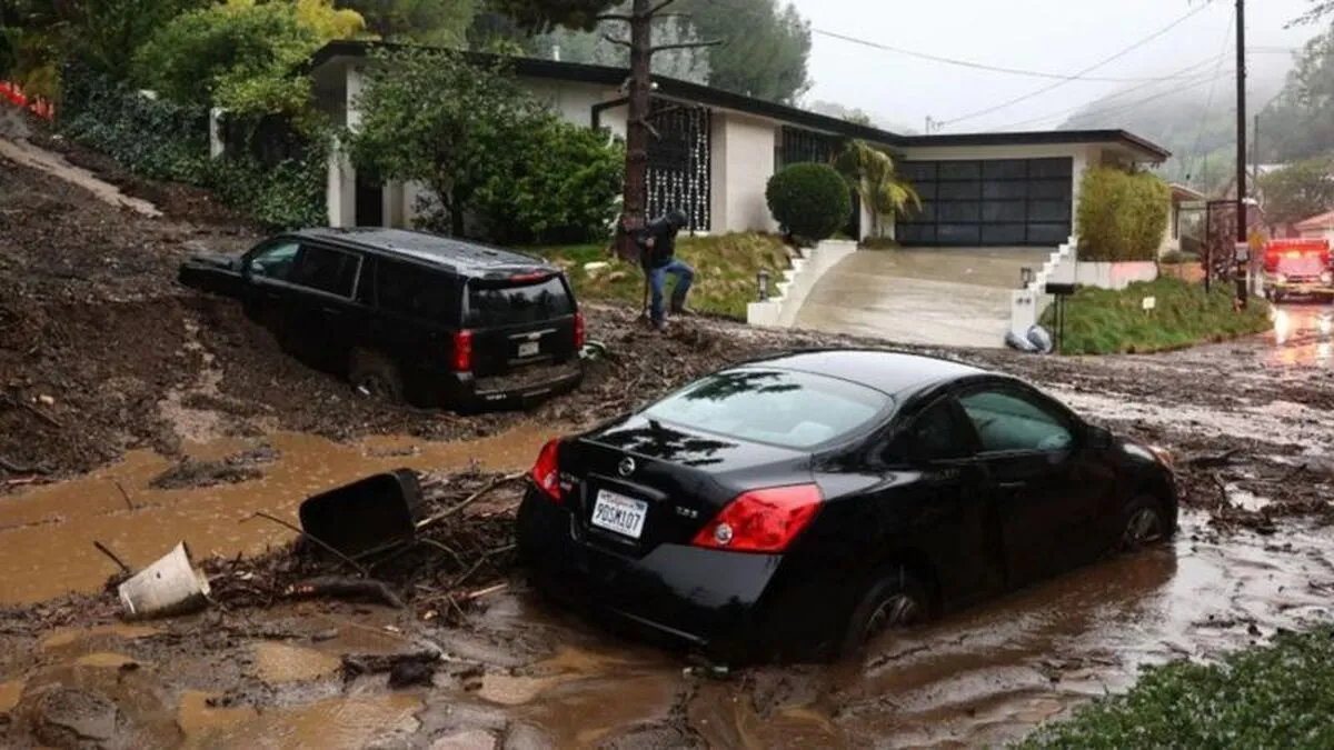 روز یکشنبه ۱۶ نفر از ساکنان هالیوود هیلز، در پی جاری شدن سیلاب و گل به درون خانههایشان و ویران شدن برخی خانهها وادار به ترک محل سکونت خود شدند.
