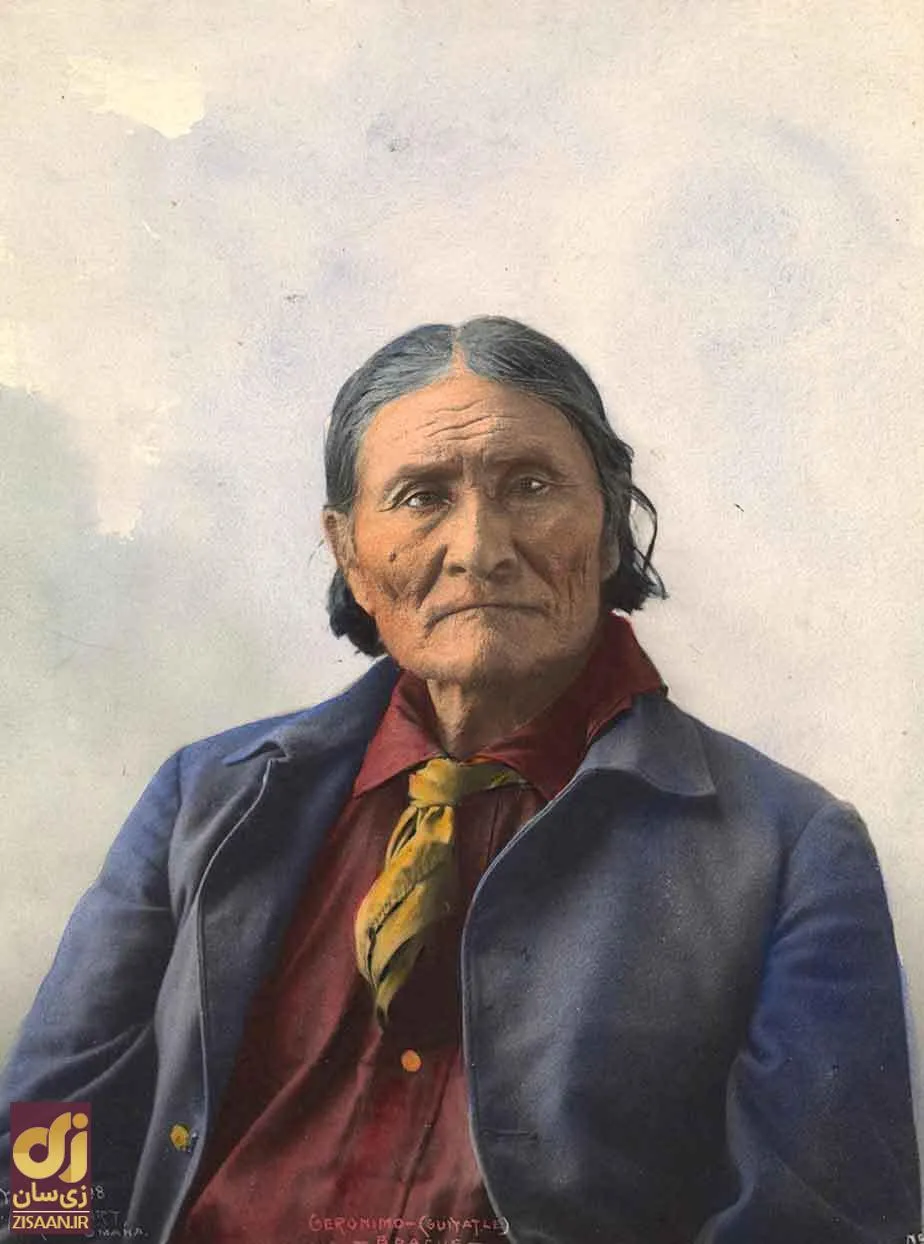 جرونیمو آپاچی ۱۸۹۸. عکس از F.A.Rinehart. اوماها، نبراسکا