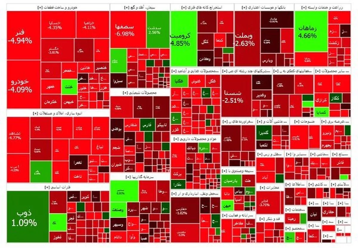 شستا، وبملت، نوری و پارسیان بیشترین تاثیر منفی را بر شاخص کل داشتند. از نمادهای پرتراکنش نیز میتوان به شستا، ذوب، خودرو و وبملت اشاره کرد که بجز ذوب، سایر نمادها منفی شدند.