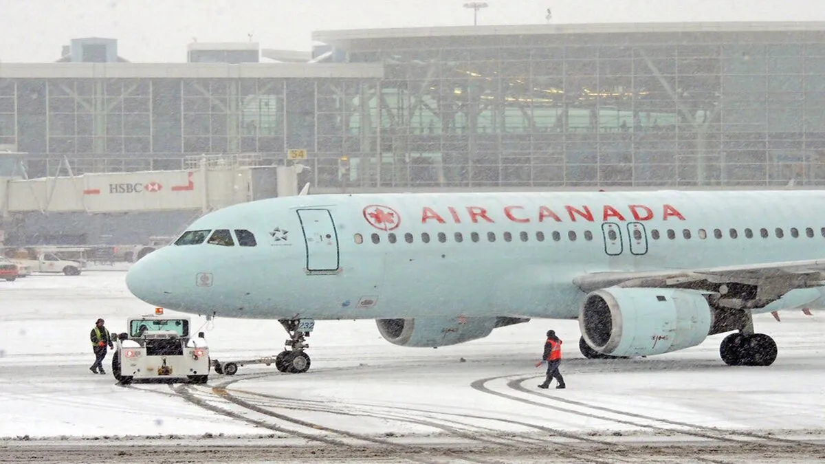 (ویدئو) تیک‌آف هواپیما در یک روز برفی
