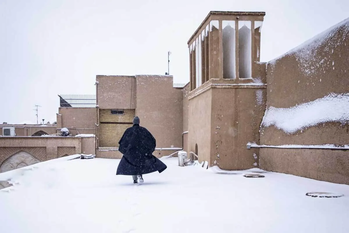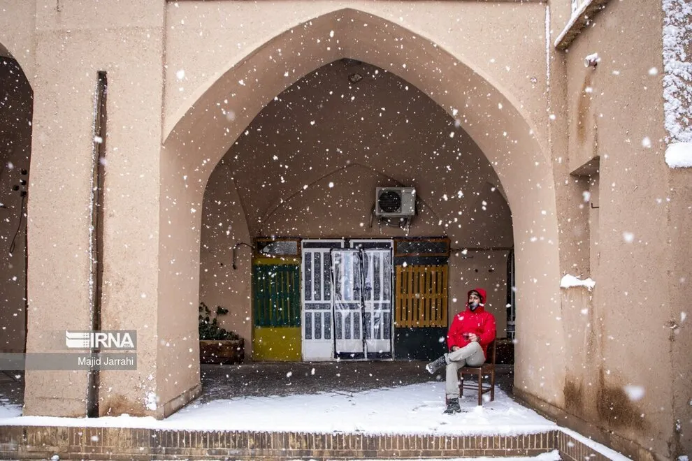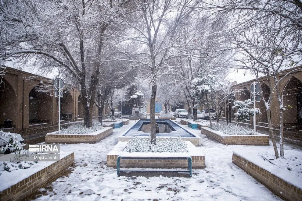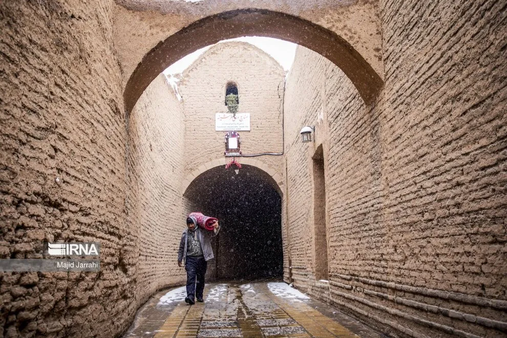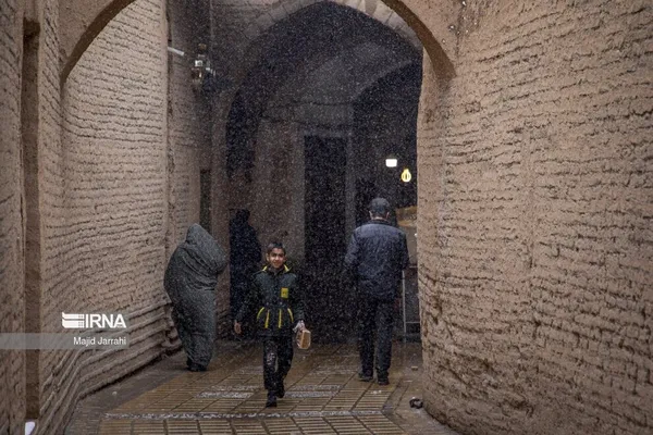 (تصاویر) بارش زیبای برف در بافت تاریخی یزد