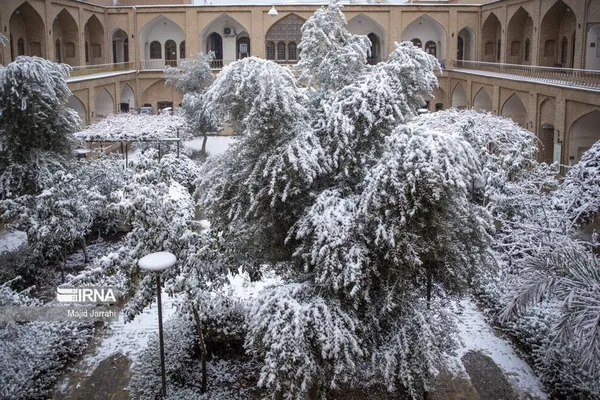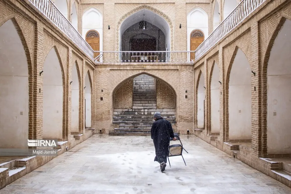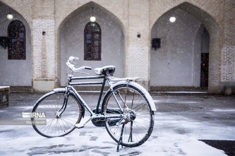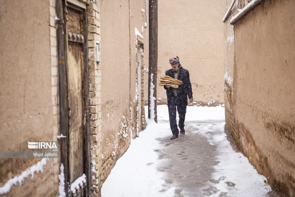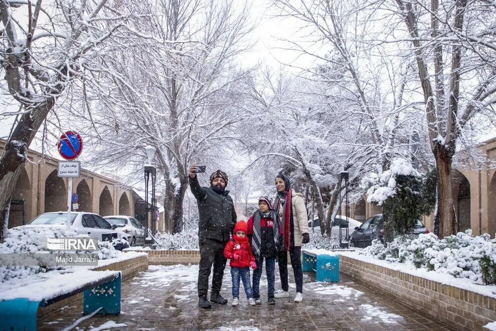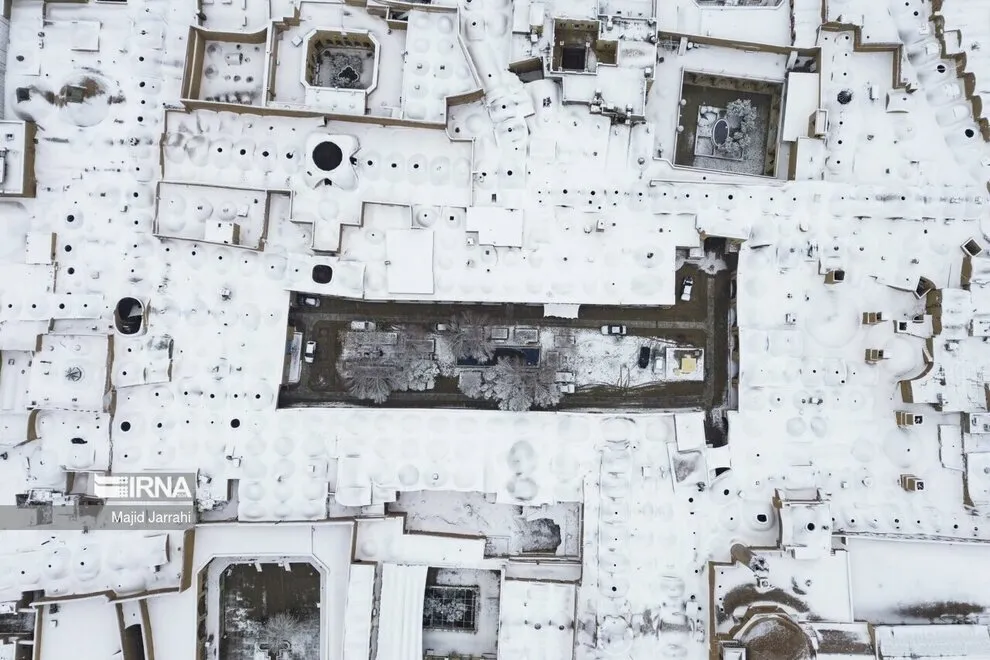 (تصاویر) بارش زیبای برف در بافت تاریخی یزد