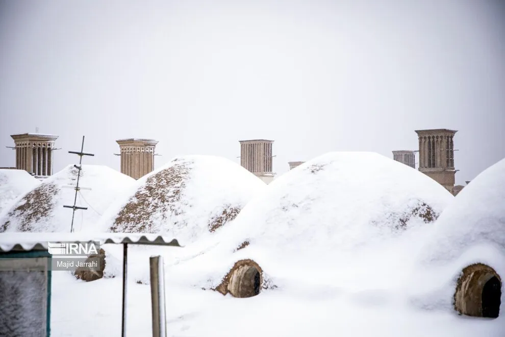 بارش برف در روزهای اخیر رخت سفید بر تن بافت تاریخی شهر میراث جهانی یزد کرده است.